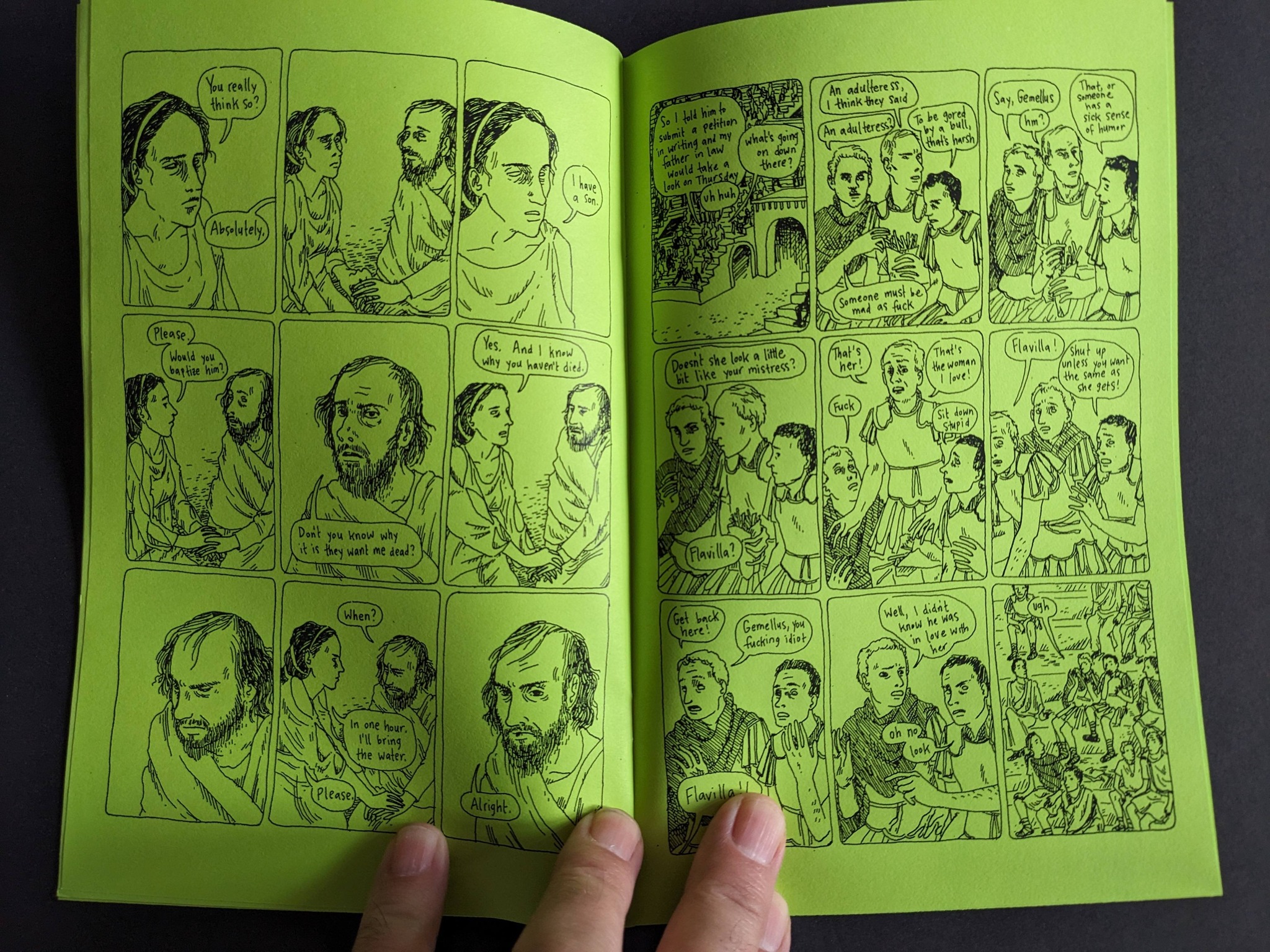 Palm Ash is a powerful and unsettling story of faith, situated during the Roman Empire’s persecution of early Christians. At turns tender and (truly) brutal, this comic will linger with you long after you finish it. 20 digest pages, saddle-stitched, black and white. (Thuban Press) FOR MATURE READERS