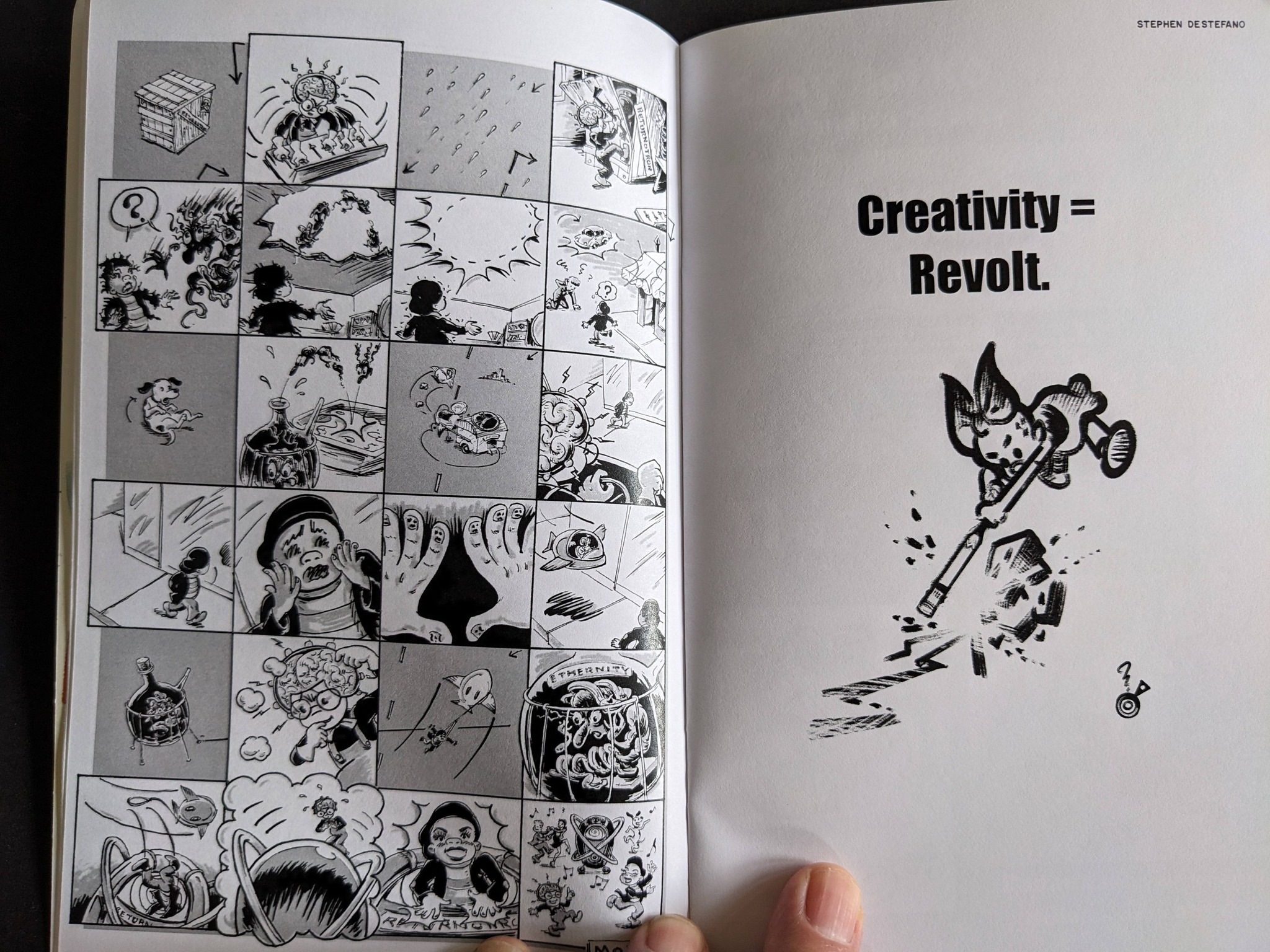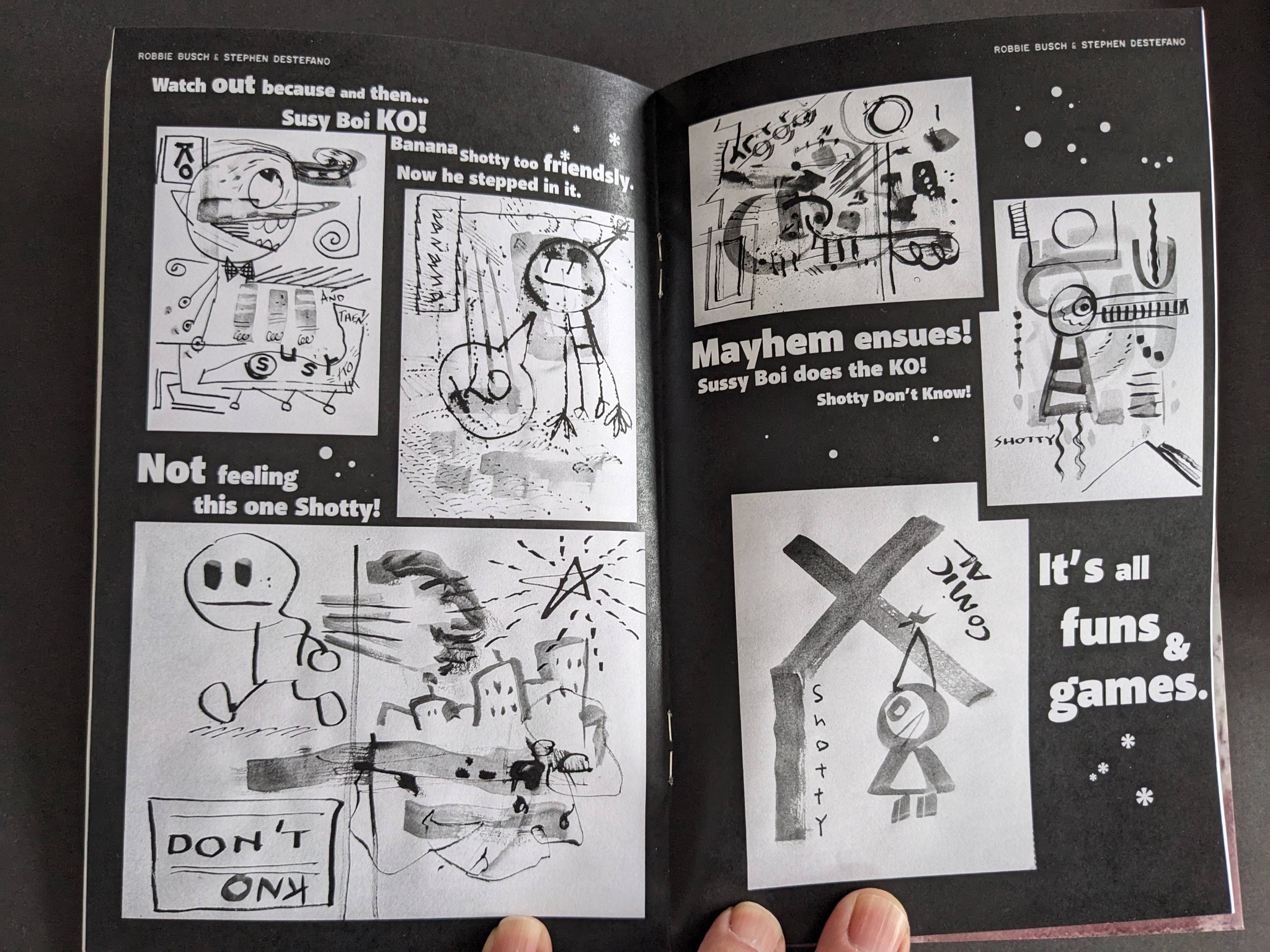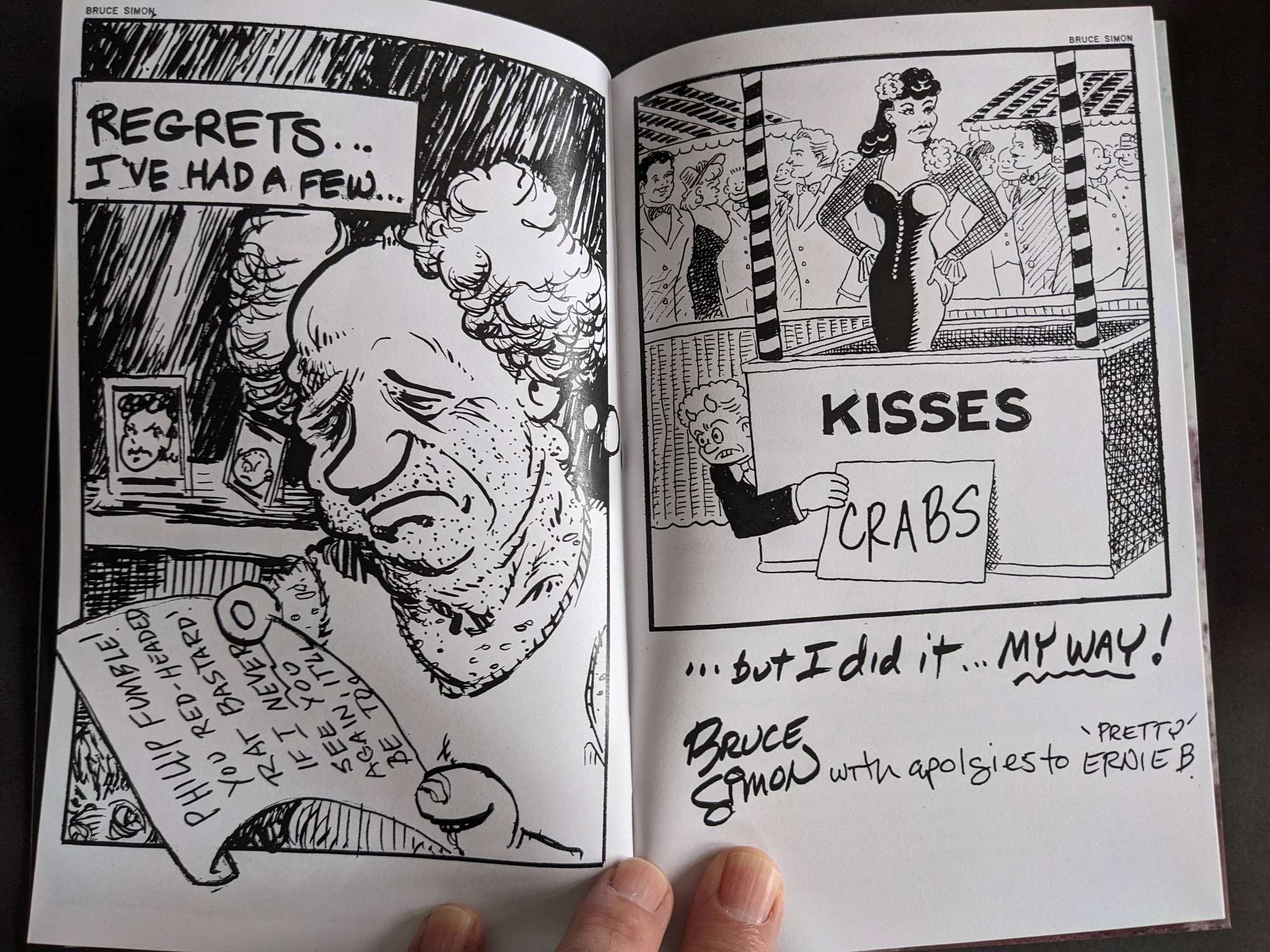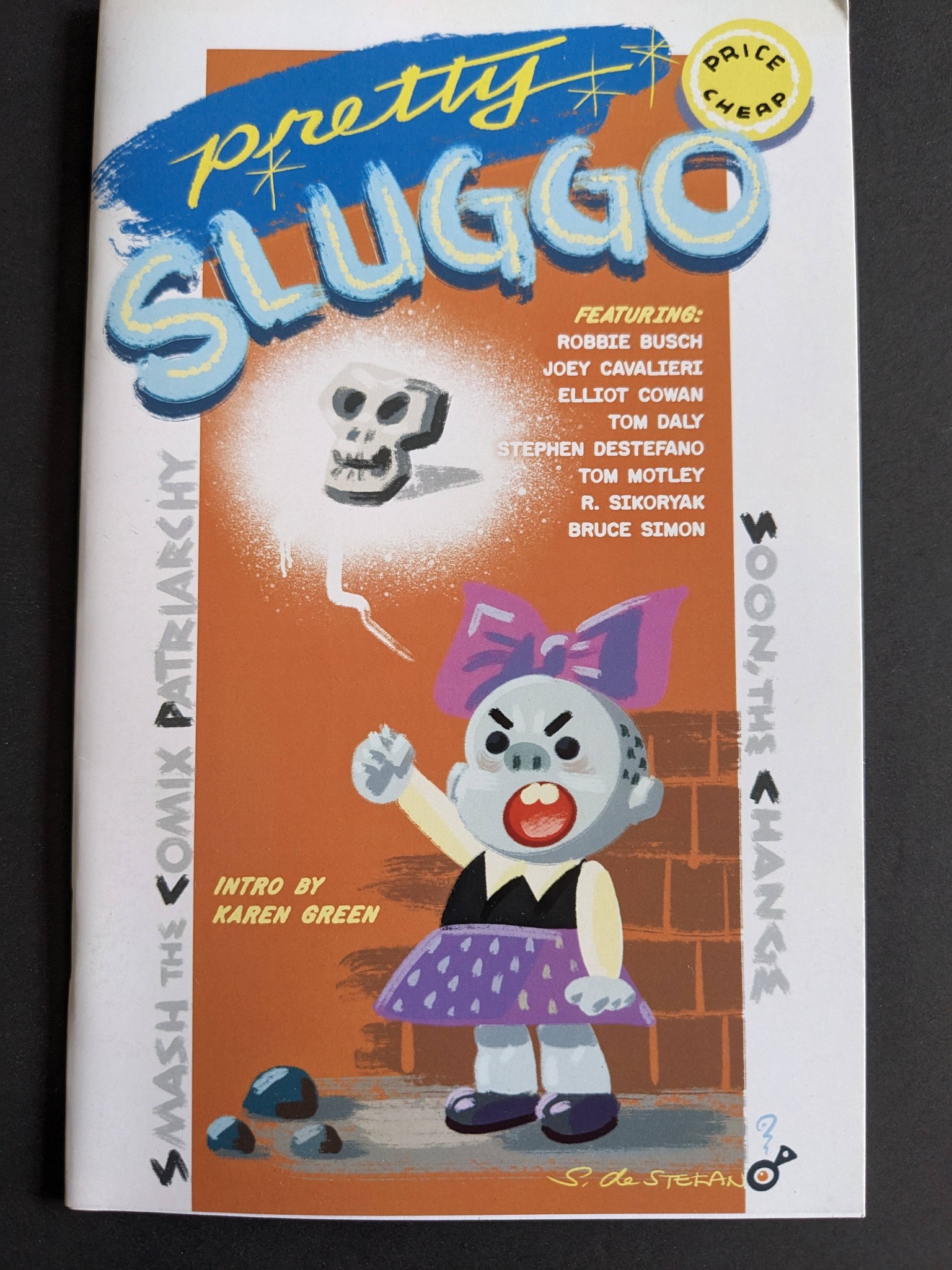A collection of experimental and/or otherwise weird comix/art takes on Nancy’s ragamuffin sidekick. Introduction by comics scholar Karen Green, with work by Robbie Busch, Joey Cavalieri, Elliot Cowan, Tom Daly, Stephen DeStefano, Tom Motley, R. Sikoryak. amd Bruce Simon. Loads of fun!(?) 28 digest pages, saddle-stitched, full-color covers and inside covers with b+w interiors. (Congress of Cartoonists)